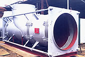 此類膨脹節(jié)的前部(通道端)有兩個(gè)工作波紋管,可以吸收來(lái)自彎管段產(chǎn)生的橫向位移;后部(平衡端)有一個(gè)平衡波紋管,它可以吸收來(lái)自直管段的軸向位移.當(dāng)彎管段產(chǎn)生橫向位移時(shí),大拉桿上球螺母繞球面墊圈轉(zhuǎn)動(dòng),同時(shí)大拉桿承受內(nèi)壓的推力,因此該膨脹節(jié)常用于泵、罐、壓縮機(jī)、汽輪機(jī)出口處,以減少對(duì)上述設(shè)備的作用力。 四、安裝使用注意事項(xiàng):